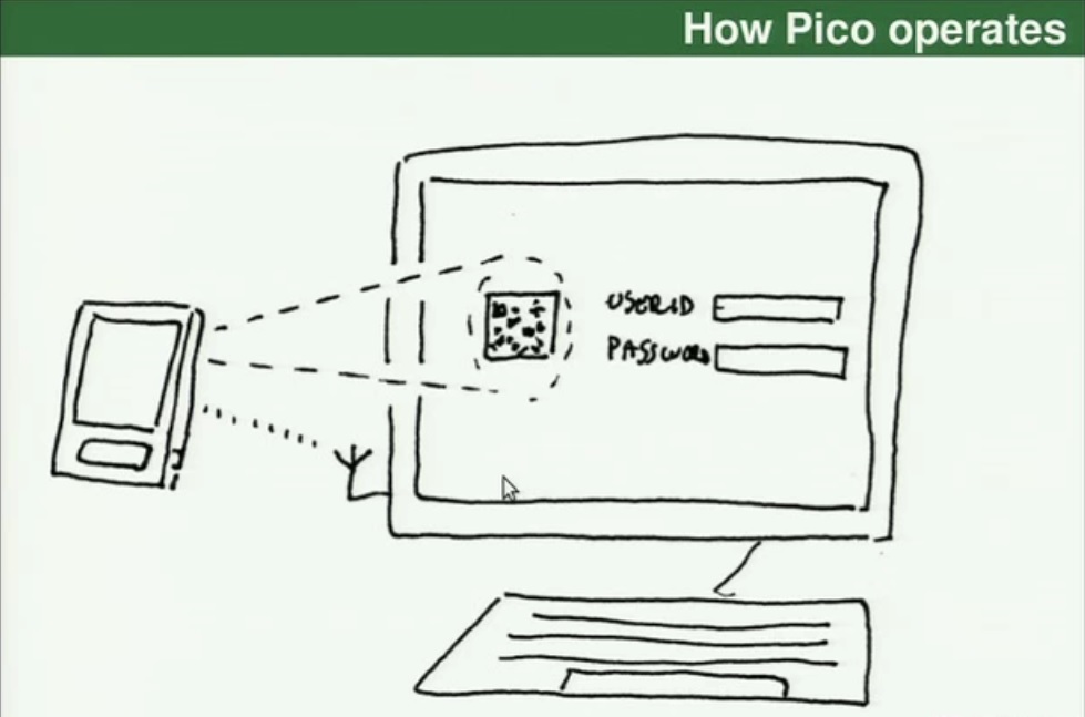 «La respuesta es Pico, que puede almacenar un sin número de inicios de sesión y contraseñas, y el aura que le permitirá al Pico de operar con seguridad» dice Stajano, que se le ha dado una subvención de 1 millón de libras por la Unión Europea para desarrollar un sistema basado en estos conceptos.