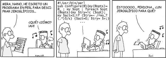 No hay nada como un poco de humor adecuado a tu nivel intelectual. Desde hace años lees las historias de estos desadaptados sociales que rondan por los blogs de Linux. Te identificas con casi todas sus historietas y en más de una ocasión haz intentado recrear un robot tan simpático como el robotito (ver punto anterior). Es el tipo de caricaturas que intercambias con tu amigo geek.