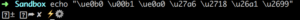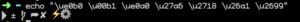 $echo "ue0b0 u00b1 ue0a0 u27a6 u2718 u26a1 u2699”- El resultado que debe verse es: