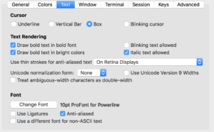 - Acceder a “iTerm > Preferences > Profiles > Text”
