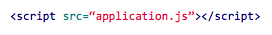 - Para poder usarlo es recomendable crear otro documento denominado application.js (js por Javascript) donde se escribiría todo el código de jQuery, este documento también hay que cargarlo en el HTML con la siguiente línea: