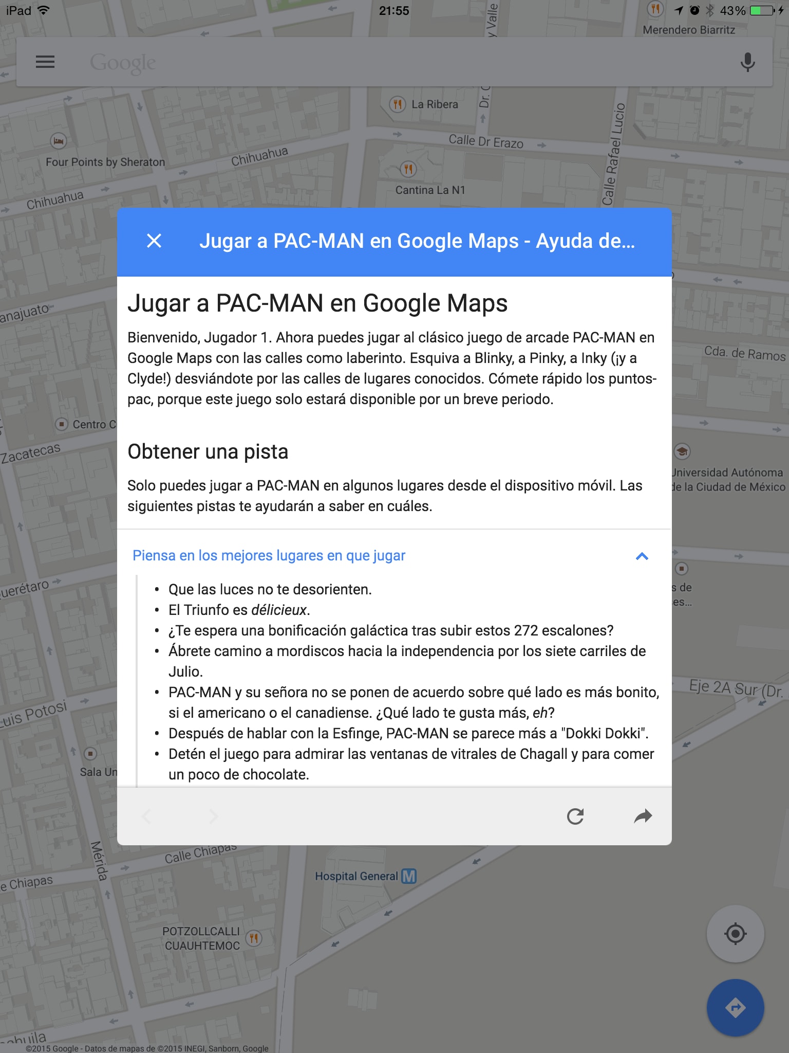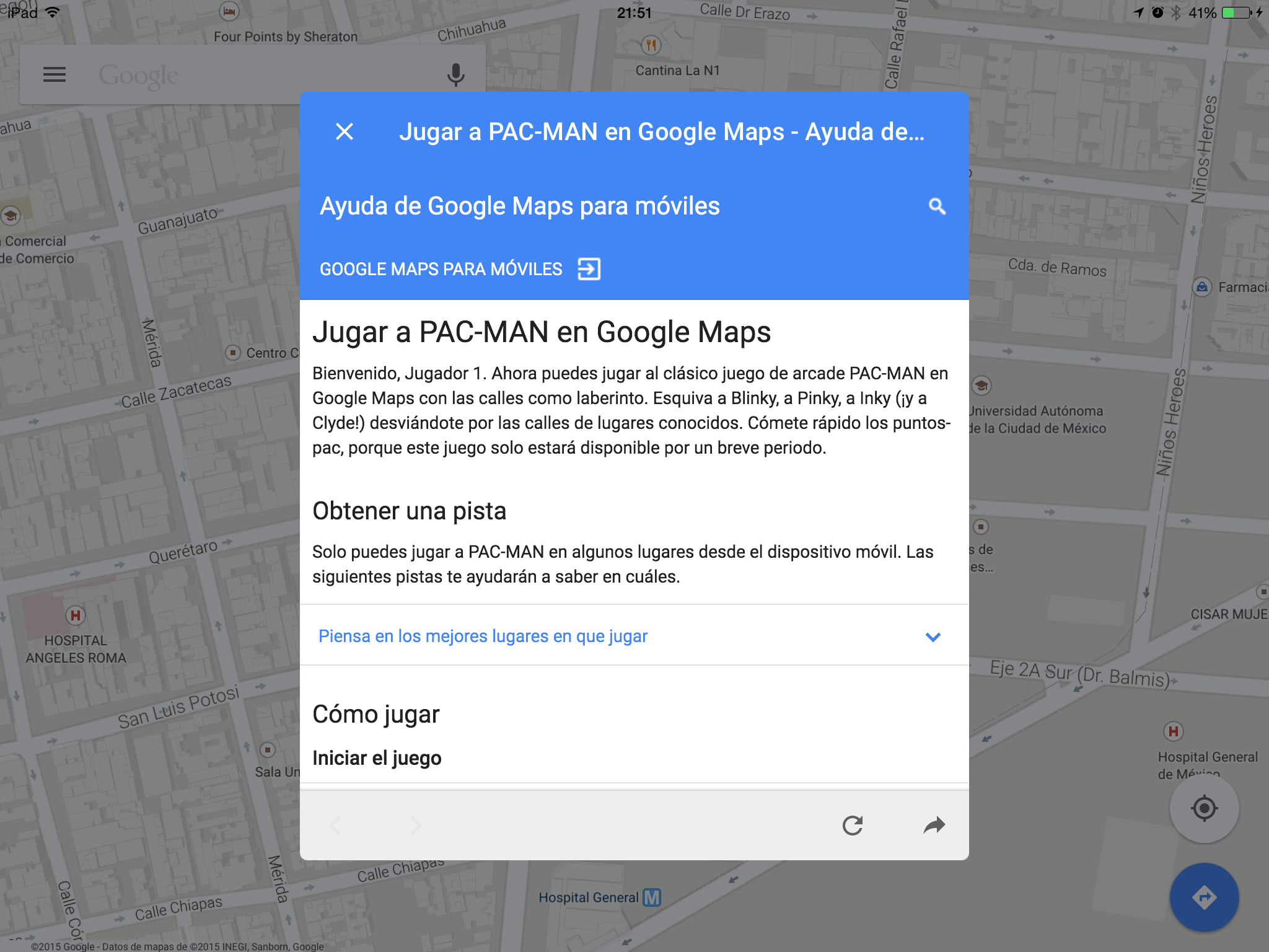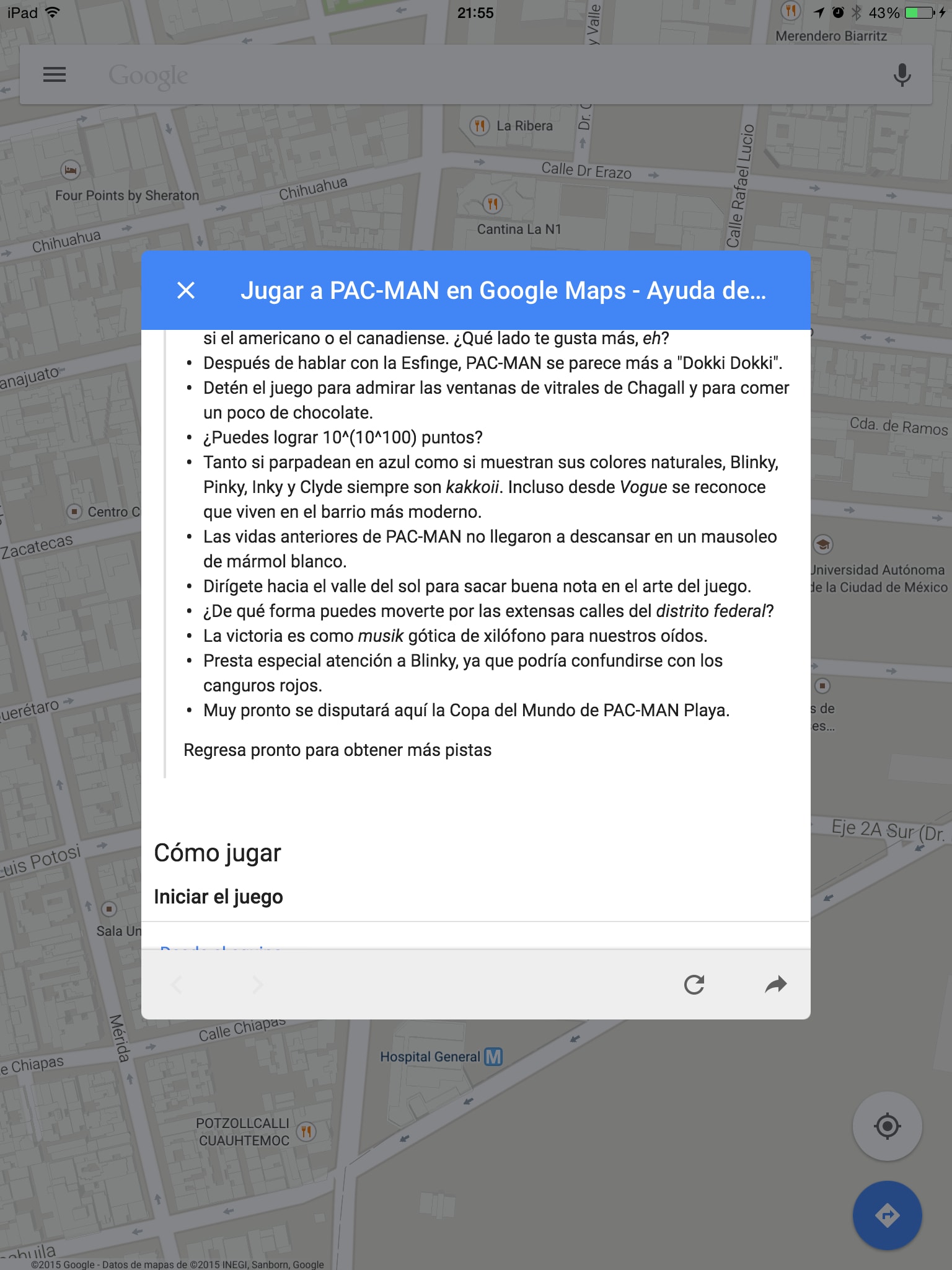 Instrucciones para jugar Pac-Man en Google Maps para iOS[/caption]