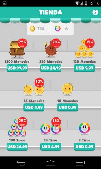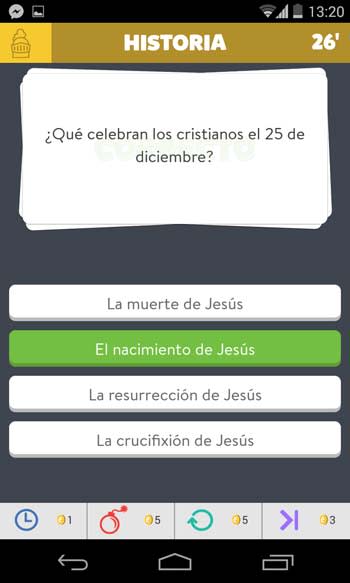 También están los powerups o ayudas que puedes usar durante las partidas. Esta especie de comodines te ayuda a cambiar de categoría si no estás satisfecho con la que ha tocado. Además hay otras opciones como escoger más tiempo para responder una pregunta, o eliminar alguna de las respuestas, saltándola o volviendo a responder una segunda vez. Estos comodines se pueden usar siempre que tengas monedas con que pagarlas, ganas monedas al ganar partidas o comprándolas en la tienda de Preguntados.
